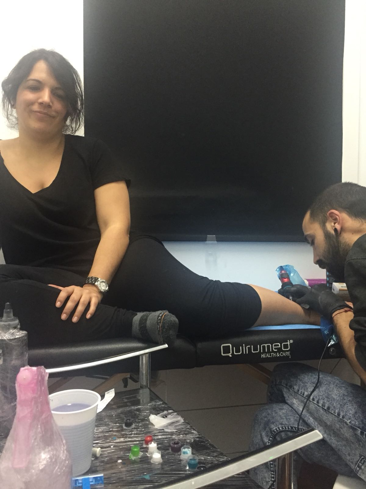 Nos hicimos el tattoo en Alcalá de Henares en Rasta Tattoo y nuestro tatuador fue Rho Tattoo que es una pasada. Tiene unos diseños y unas manos alucinantes, la verdad es que en nuestro tatuaje tampoco se aprecia mucho su magia (ya que es mini) pero si pincháis en su nombre es posible que alucinéis con sus diseños de Instagram.